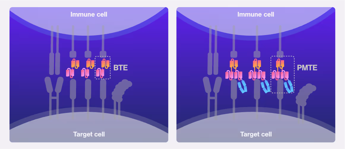 First-generation bispecific T cell engagers (BTEs) have shown promise in preclinical models but often suffer from a short plasma half-life due to their small size and absence of an Fc domain. Additionally, limited tumor retention can lower local therapeutic concentrations and impede efficacy. Cancer cells can even adapt and evade immune targeting through antigen heterogeneity and loss, threatening sustained responses. The immunosuppressive tumor microenvironment further hinders T cell function and promotes therapeutic resistance. To develop an effective strategy, any cell engager must overcome these barriers to achieve robust, consistent targeting and immune activation.
