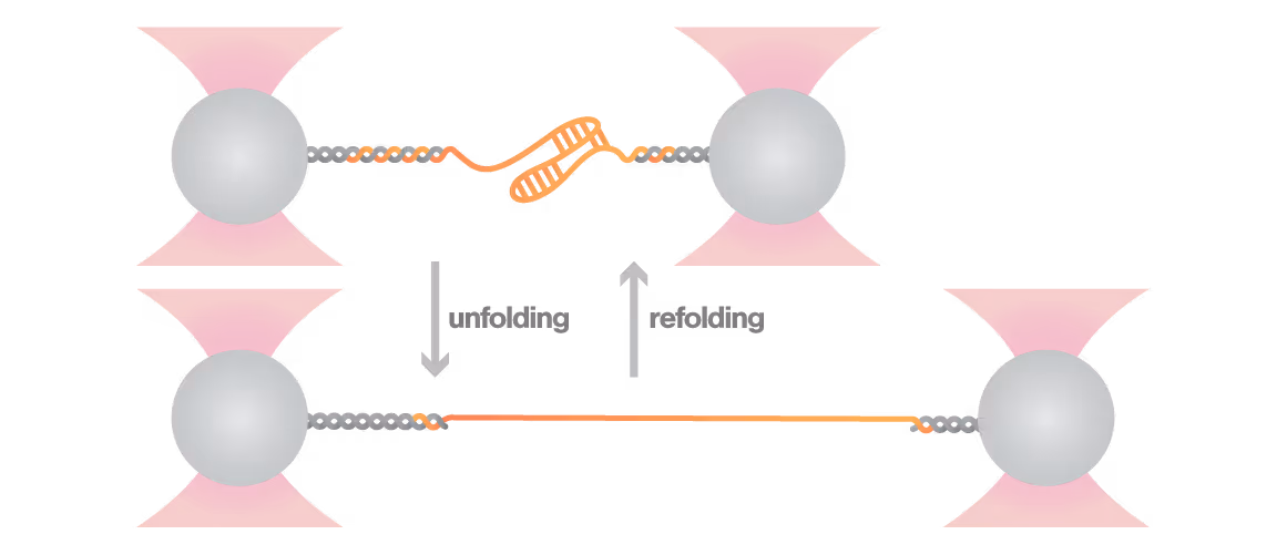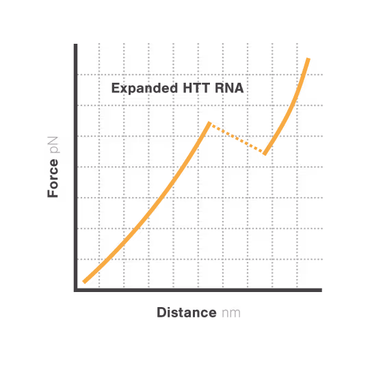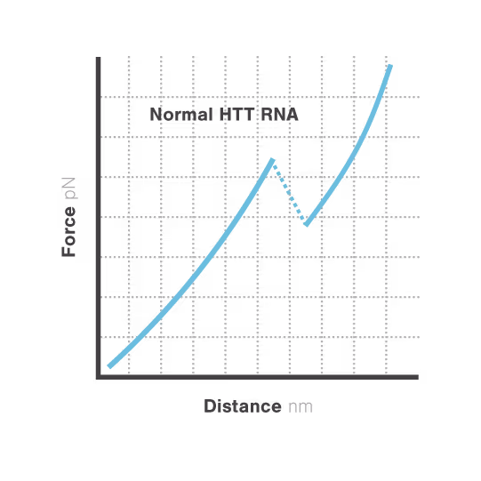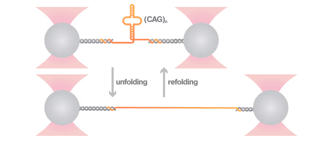 Researchers Christian Kaiser and Sarah Woodson investigated how expanded CAG repeats in HTT RNA influence misfolding and aggregation. By applying real-time single-molecule force measurements with LUMICKS C-Trap, they discovered: