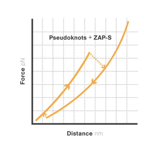 A study led by the Neva Caliskan Lab at the Helmholtz Institute for RNA-Based Infection Research investigated how ZAP-S protein modulates SARS-CoV-2 frameshifting through altering the pseudoknot structure. By directly tracking the real-time pseudoknot structural dynamics in the presence or absence of ZAP-S using LUMICKS C-Trap, they revealed: