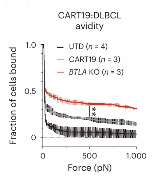 Cell avidity measurements uncovered the mechanism by which the BTLA-HVEM axis reduces cell-cell binding and were used to support rational CAR-T design, ensuring both potency and safety.