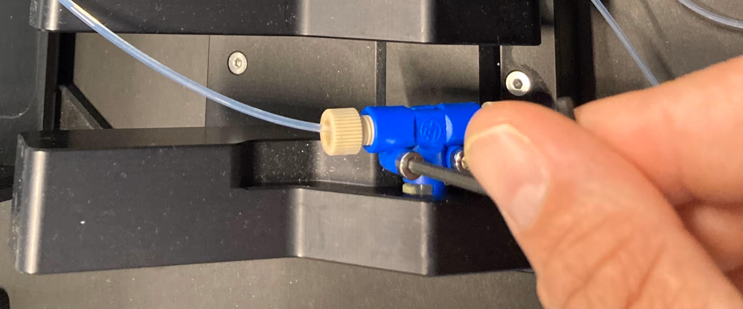 3.2. Unscrew all the valves from the assembly using the 2.5 mm hex key. Retain screws for reuse.