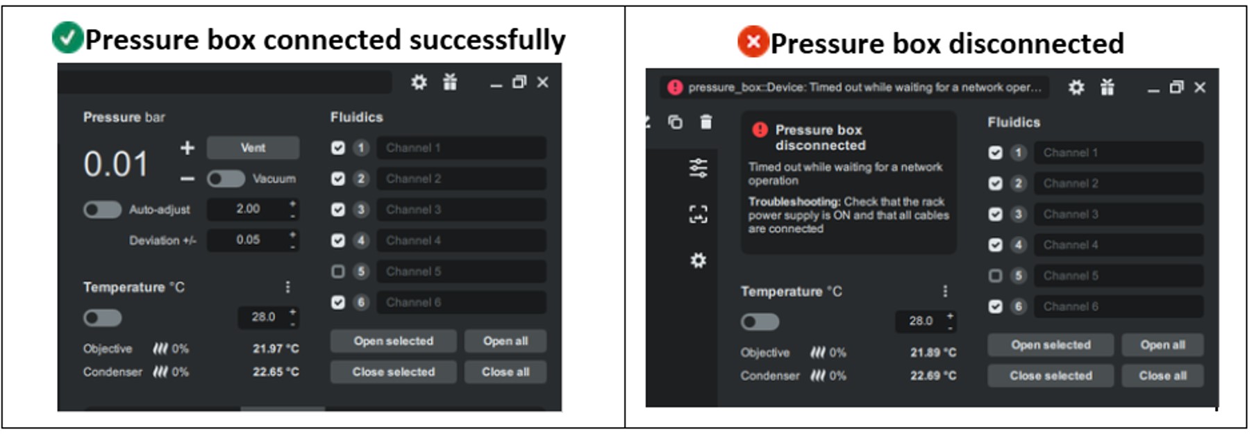 - If instability persists, contact support@lumicks.com and provide details of the pressure fluctuations.