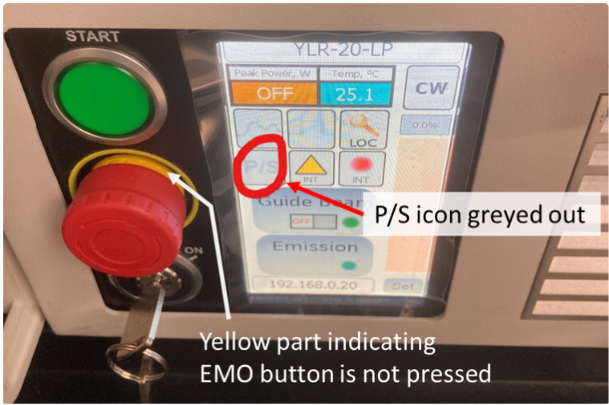 - If the button lights up: the interlock circuit is complete, and the trapping laser can be turned on. In this case the P/S icon on the touchscreen is enabled.