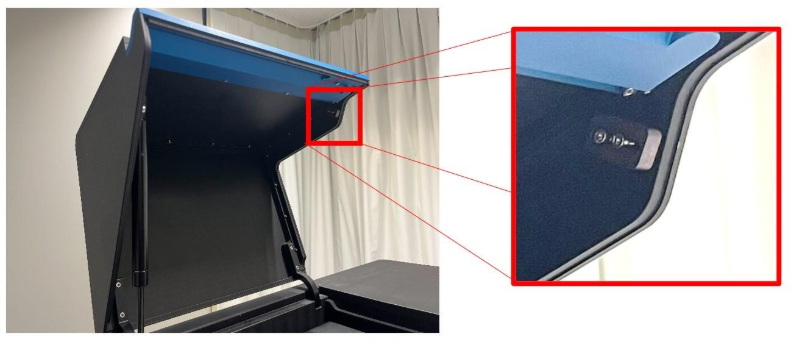 - If the lid remains open or a visible gap is present, retract the actuator block slightly until the hood closes level with the cover box while still pressing the interlock switch.